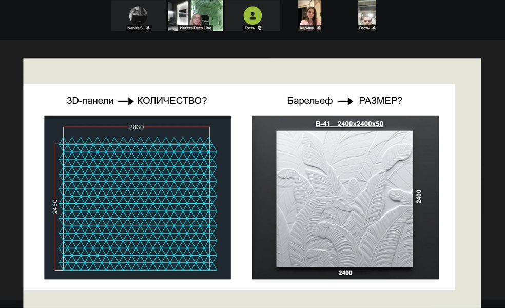 During a live broadcast, DECO LINE Sales Manager Ivetta Borisova covered all these points in detail. The broadcast attracted an audience of interior designers, contractors, and anyone interested in contemporary applied art. You can watch the recording of the broadcast at the link: https://vkvideo.ru/video-101661897_456239138?t=41m23s