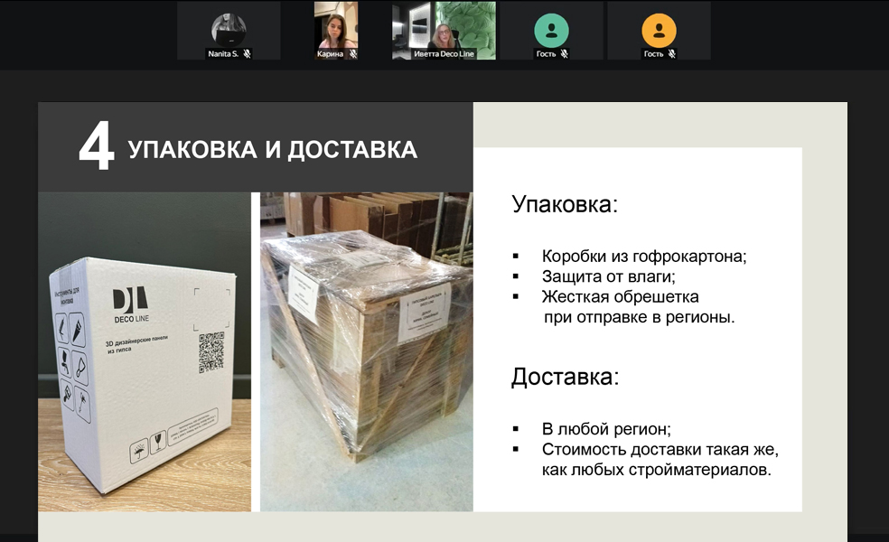 During a live broadcast, DECO LINE Sales Manager Ivetta Borisova covered all these points in detail. The broadcast attracted an audience of interior designers, contractors, and anyone interested in contemporary applied art. You can watch the recording of the broadcast at the link: https://vkvideo.ru/video-101661897_456239138?t=41m23s