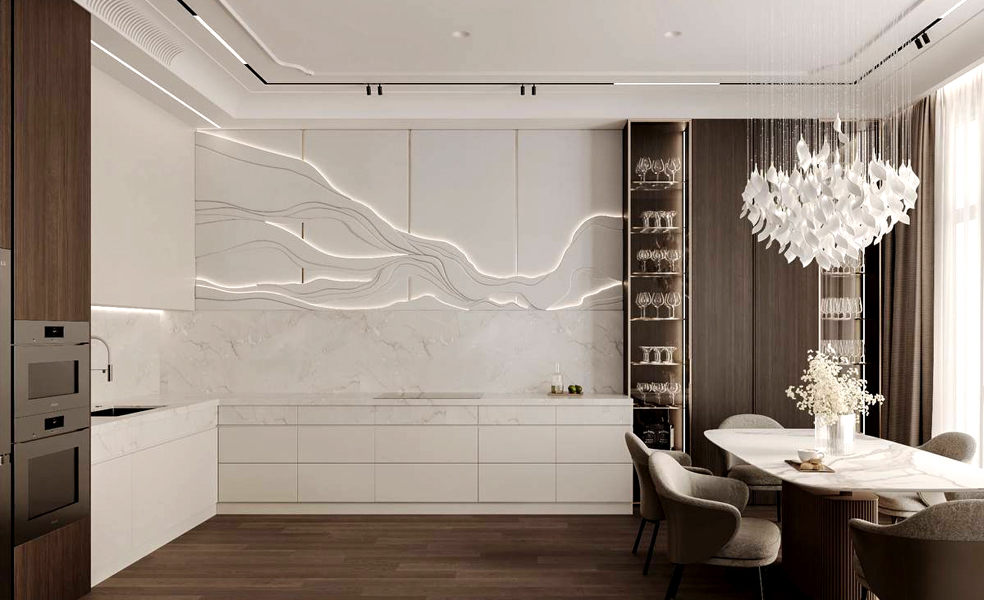 Designer Karina Gabrielyan (https://t.me/karinacolor) was our guest on the live broadcast. She shared her impressions of working with our bas-reliefs and discussed the nuances to consider when designing and installing plaster wall panels. Karina based her presentation on her completed apartment interior design project in the Reka residential complex in Moscow.