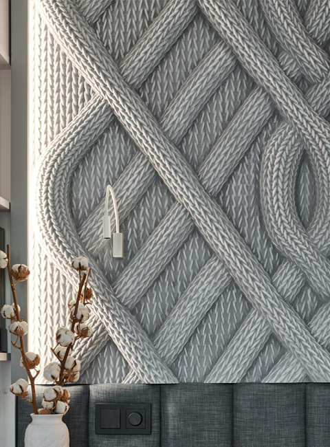 Использование направленных светильников или трековых систем для объемных панно даёт возможность расставлять яркие акценты на отдельных участках 3D-стены. Для этого часто применяют низкоуровневую боковую подсветку гипсовых барельефов. Этот прием придает им дополнительный объем и добавляет драматизма всей композиции.