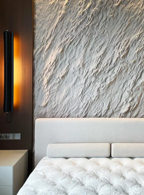 «Это могут быть бра и светильники, расположенные по сторонам объемного панно — распространенный вариант для оформления спальни. Или это могут быть споты с поворотным механизмом. Они позволят максимально точно настроить подсветку в интерьере, направив несколько источников света на гипсовый барельеф под разным углом, создавая нужный эффект», - делится профессиональным опытом Михаил Дробыш, специалист по монтажу панно с подсветкой DECO LINE.