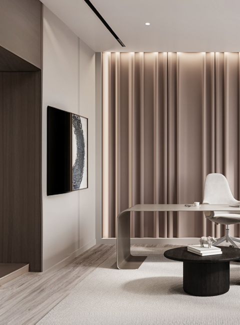 • Гостиная, спальня — акцентная стена из гипсовых панелей WAVE с мягким освещением в изголовье кровати или в TV-зоне станет прекрасным дополнением к современным минималистичным, скандинавским, средиземноморским и другим популярным направлениям дизайна.