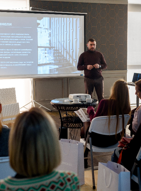 Мероприятие прошло в профессиональной, но при этом открытой и вовлекающей атмосфере, способствующей диалогу между спикером и аудиторией. Участники смогли детально изучить материалы, задать профильные вопросы и глубже понять потенциал использования барельефов в создании выразительных и запоминающихся интерьеров. Такой формат взаимодействия сделал презентацию не только информативной, но и практически ориентированной.